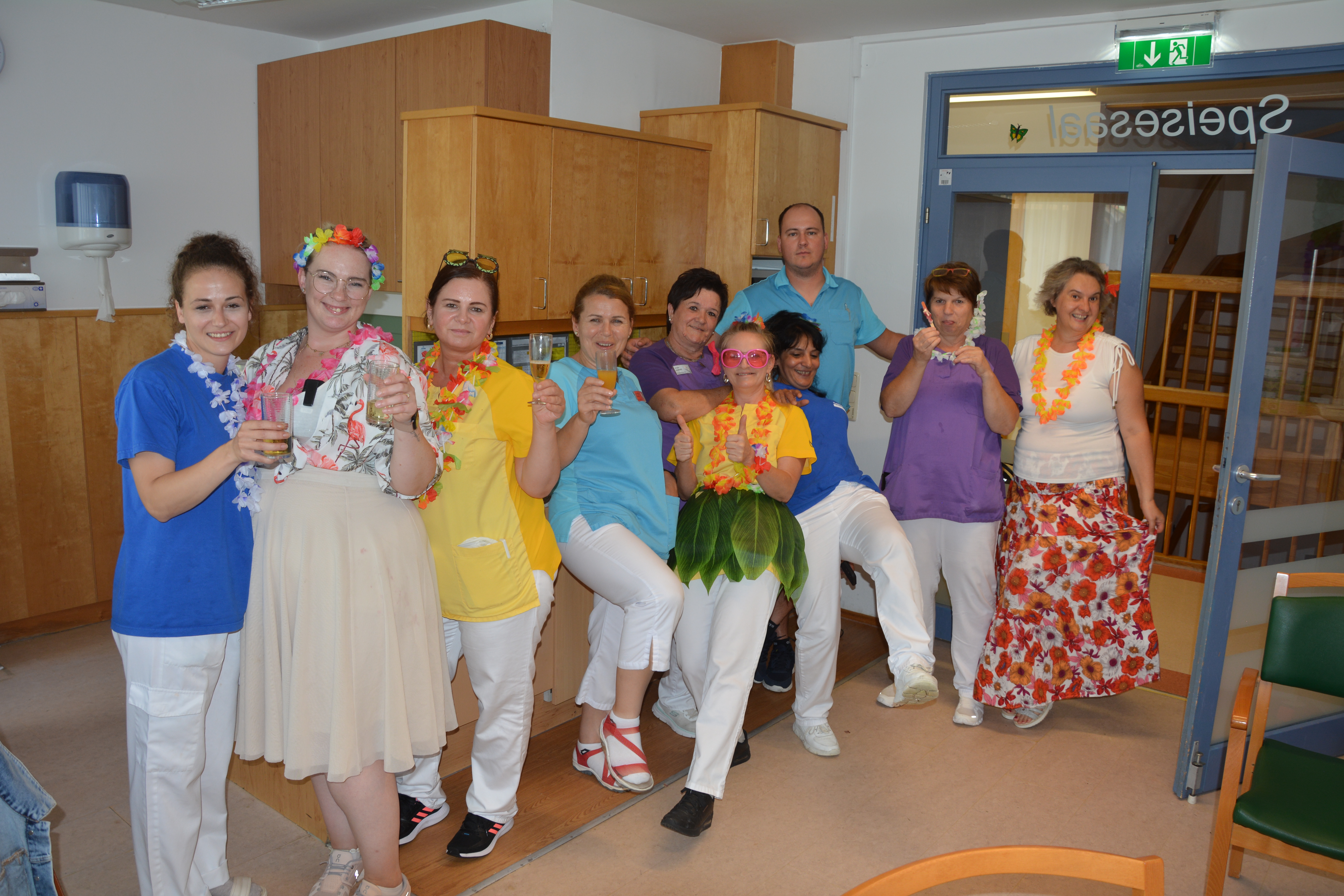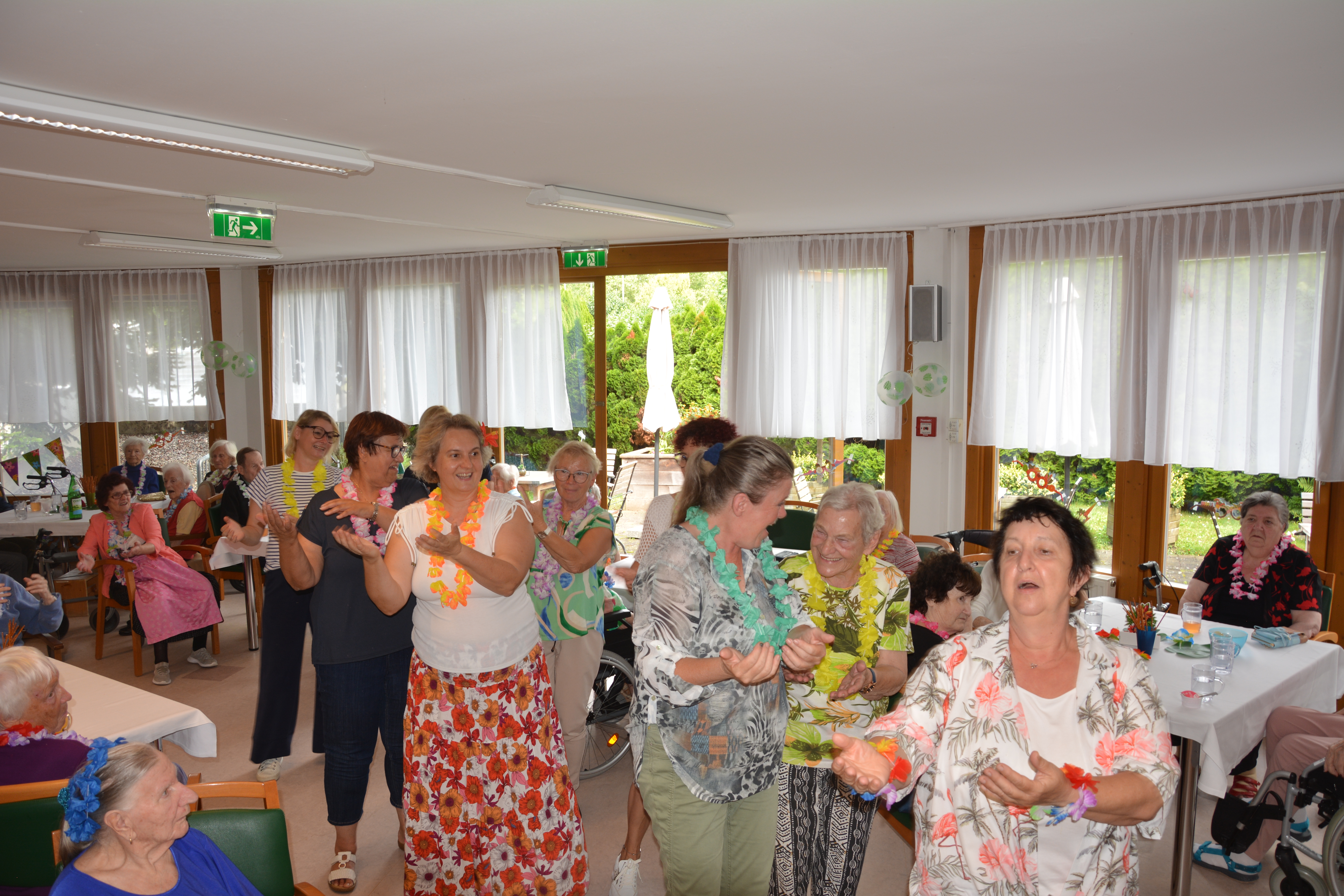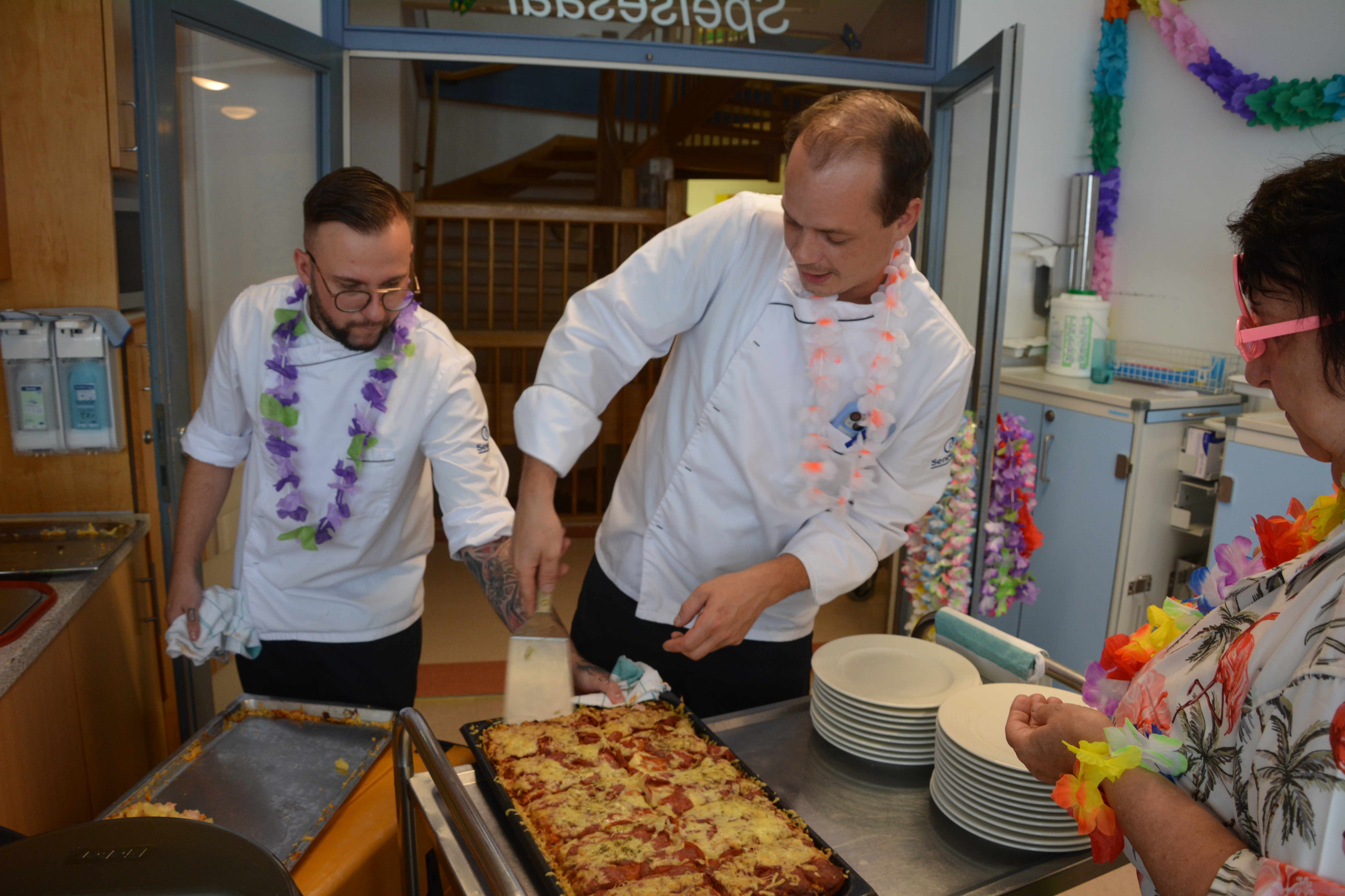 Im SeneCura Sozialzentrum Feldbach fand kürzlich ein tolles Sommerfest mit dem Motto „Aloha – willkommen auf Hawaii“ statt. Das Haus wurde wundervoll dekoriert und alle Mitarbeiter:innen sowie Bewohner:innen erhielten eine Blumenkette als Willkommensgruß auf Hawaii. Es gab frisches Eis mit Früchten und es wurde fleißig zu schwungvoller Musik getanzt, denn die Bewohner:innen studierten sogar einen hawaiianischen Tanz ein. Kulinarisch wurden die Anwesenden auch verwöhnt, denn der Küchenleiter des Hauses zauberte vor Ort frische Pizza Hawaii. Das Sommerfest war für die Angehörige und Bewohner:innen ein absolutes Highlight.