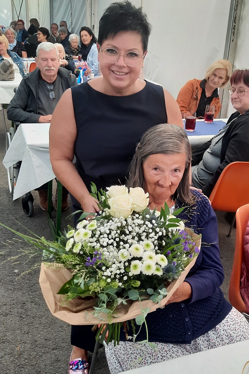25 Jahre Näher am Menschen – das galt es kürzlich im SeneCura Sozialzentrum Feldbach mit einem unvergesslichen Fest voller Fürsorge und Gemeinschaft zu feiern. In einem großen Festzelt genossen insgesamt 93 Bewohner:innen, 40 Mitarbeiter:innen sowie 70 weitere Gäste aus der Region das bunte Programm. Küchenchef Michael Hiden und sein Team verwöhnten alle Anwesenden mit einem reichhaltigen steirischen Buffet und exquisiten Desserts. Die musikalische Versorgung des Frühschoppens übernahm die „Jungsteirer Kapelle“ mit feierlichen Klängen. „Ich freue mich sehr, dass ich dieses besondere Jubiläum heute mitfeiern darf. Ich wohne schon viele Jahre im SeneCura Sozialzentrum Feldbach und bin einfach begeistert vom Einsatz der Mitarbeiter:innen. Es war ein fantastischer Tag mit vielen schönen Momenten und vielen lieben Menschen“, so Frieda Strunz, Bewohnerin im SeneCura Sozialzentrum Feldbach. Sie wohnt von allen Senior:innen am längsten im Haus und wurde für ihre langjährige Treue stellvertretend für alle Bewohner:innen mit einem Blumenstrauß geehrt.