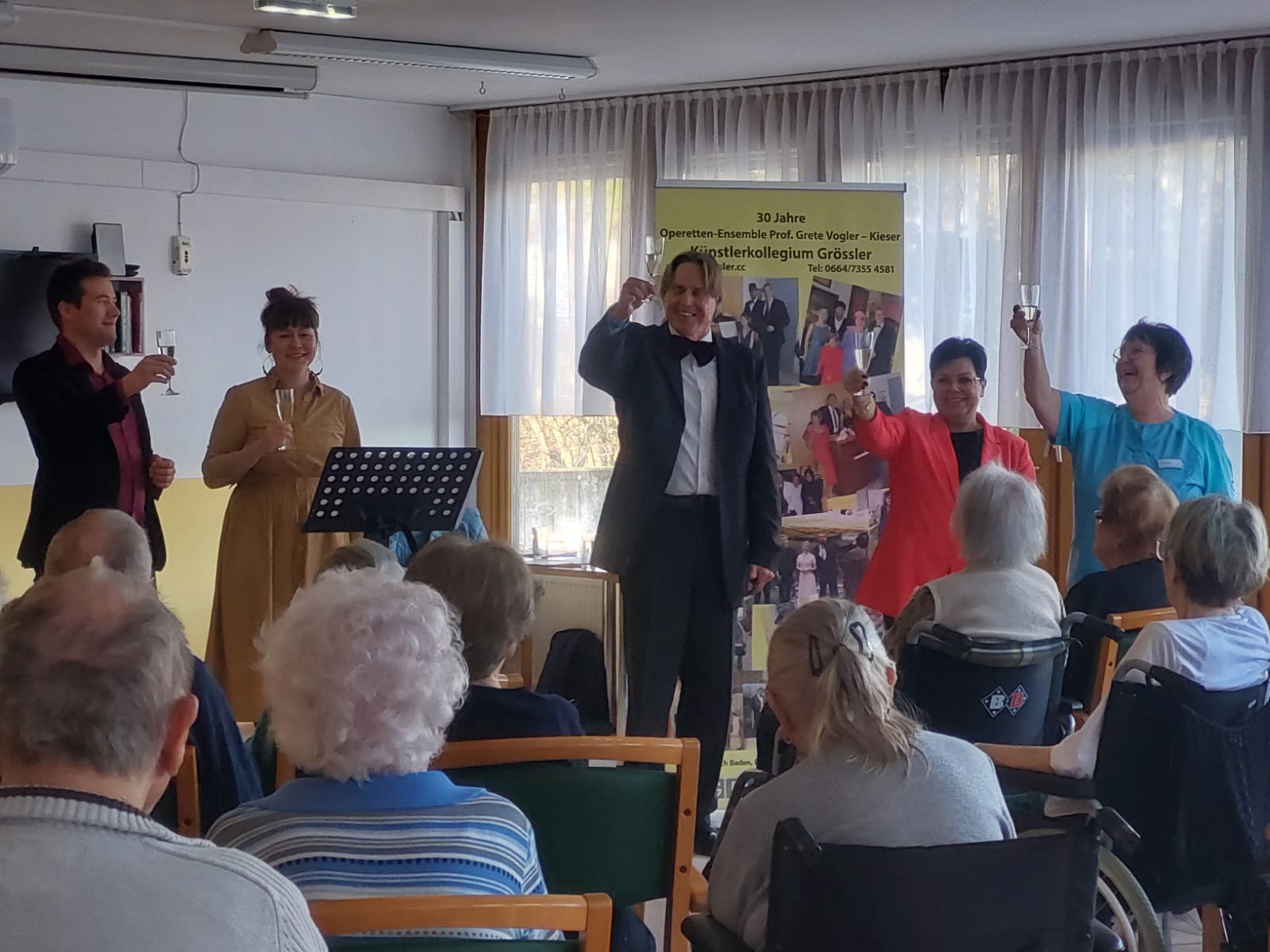 Im SeneCura Sozialzentrum Feldbach fand kürzlich ein musikalischer Operettennachmittag statt. Manfred Grössler und sein Künstlerkollegium begeisterten die Bewohner:innen mit einem schwungvollen Musikprogramm. Die wunderschönen Melodien und beeindruckenden Stimmen der Künstler:innen sorgte für große Freude im Haus. Die alten Lieder, die die Musiker:innen zu ihrem Besten gaben, weckten Erinnerungen an vergangene Zeiten und sorgten für das ein oder andere Schmunzeln bei den Seniorinnen und Senioren. Es war ein besonderer Nachmittag und die Bewohner:innen genossen es, gemeinsam in eine musikalische Welt einzutauchen.