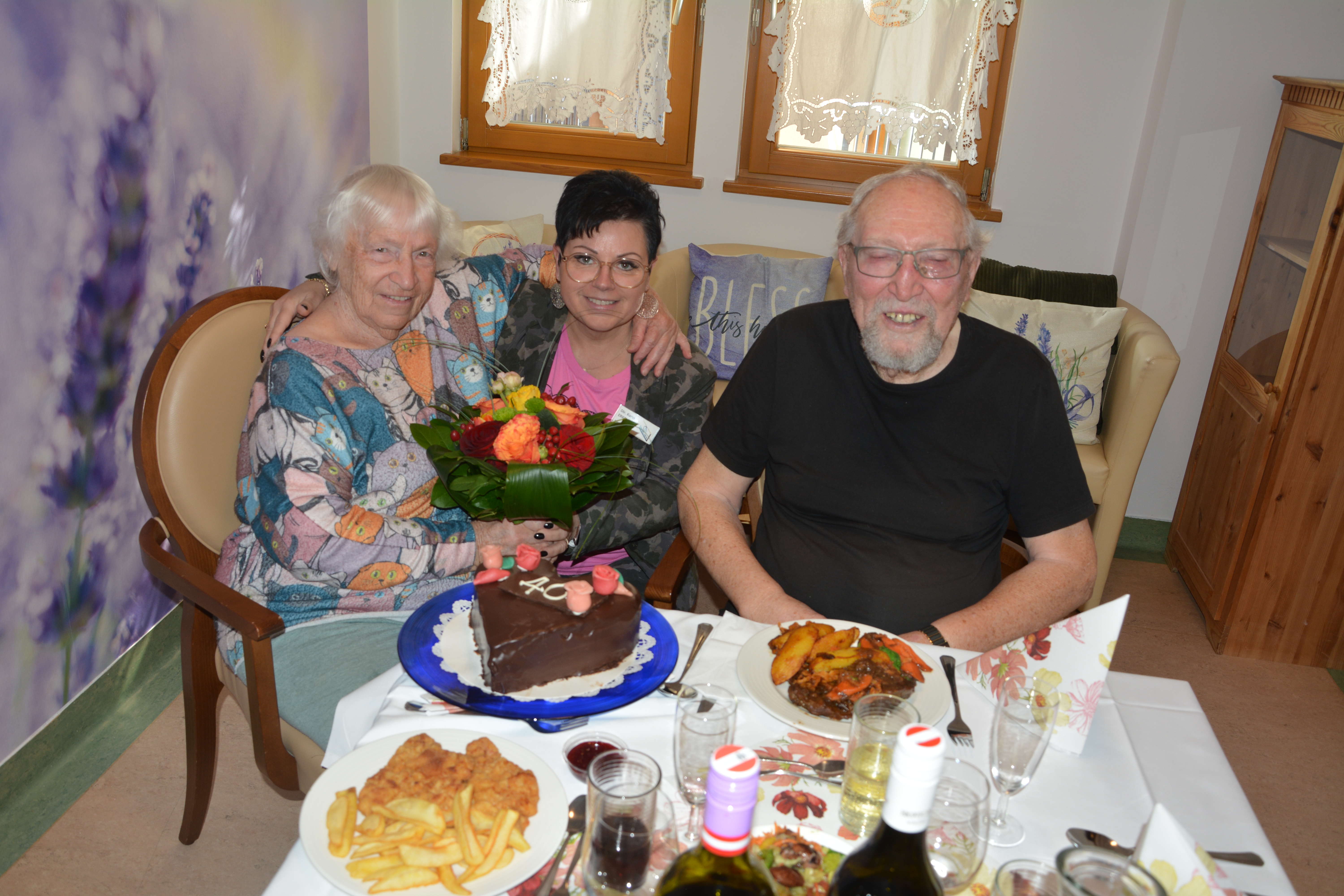 Ein besonderes Jubiläum wurde kürzlich im SeneCura Sozialzentrum Feldbach zelebriert, denn die Bewohner:innen Theresia und Franz Wockner begingen ihren 40. Hochzeitstag. In festlicher Atmosphäre wurde mit köstlichem Essen, erlesenen Weinen und einem schönen Blumenstrauß auf das Ehepaar angestoßen. Als süßer Abschluss wurde eine herrliche Schokotorte serviert, die sich die Familie Wockner schmecken ließ. Gemeinsam wurde mit dem ein oder anderen Glas Sekt auf vier gemeinsame Jahrzehnte voller Liebe und Erinnerungen angestoßen.