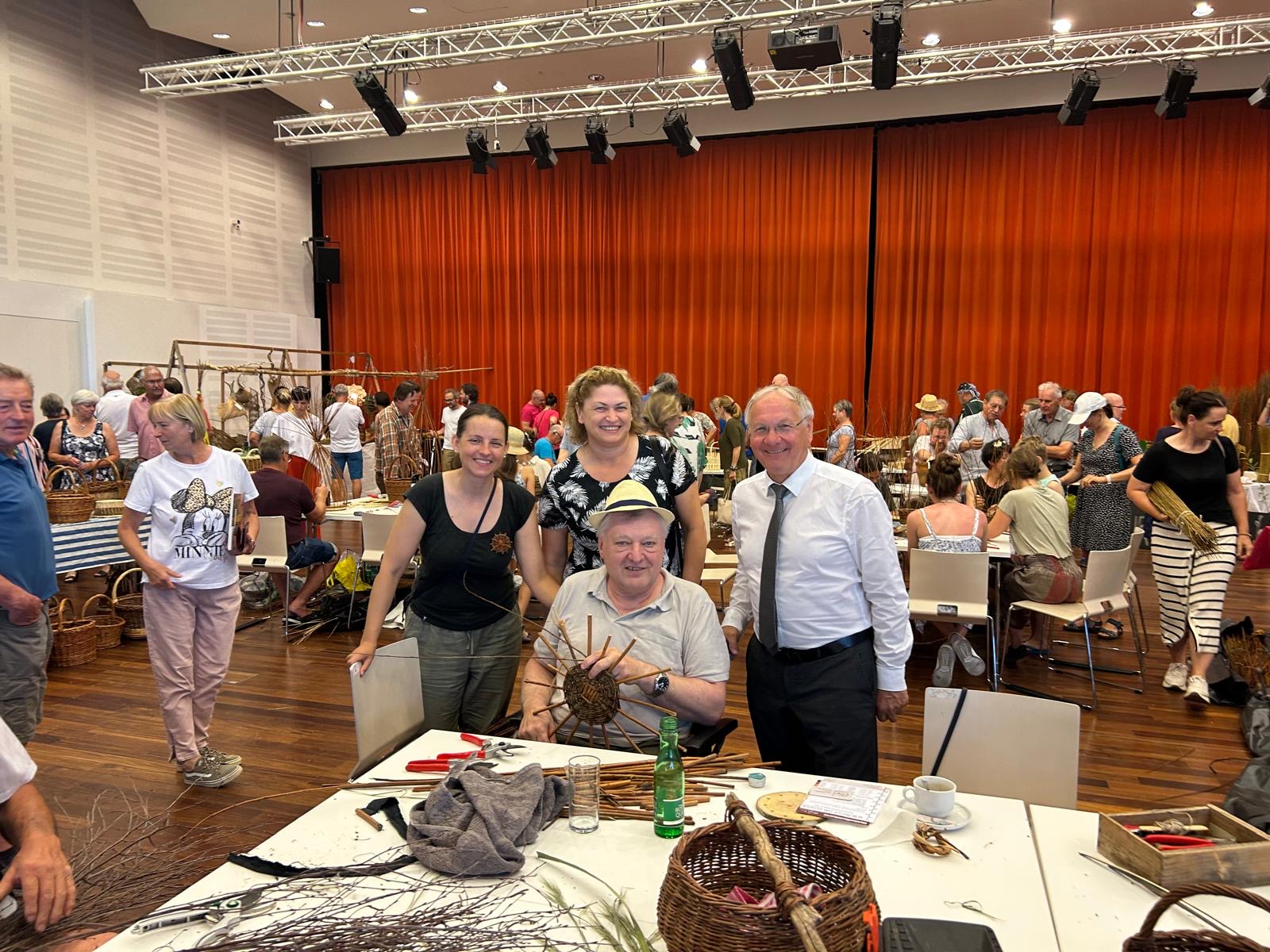 Kürzlich ging für Karl Schrei ein absoluter Herzenswunsch in Erfüllung. Karl Schrei ist leidenschaftlicher Korbflechter und hat bereits heuer zur Osterzeit einen Korb für die Fleischweihe im SeneCura Sozialzentrum Feldbach – Haus Melisse geflochten. Nachdem er erfahren hat, dass heuer die Korbflechter nach Feldbach kommen, war es sein größter Wunsch, dort dabei zu sein. Gesagt – getan. Pflegedienstleitung Camelia Popa M.Sc. und Seniorenanimateurin Sabine Puntigam sind mit ihm am Sonntag, 15.06.2025, zu diesem Event gegangen. „Die Freude war Karl Schrei ins Gesicht geschrieben. Er hat sich riesig über die Veranstaltung gefreut.“, so Sabine Puntigam, Seniorenanimateurin des SeneCura Sozialzentrums Feldbach – Haus Melisse.