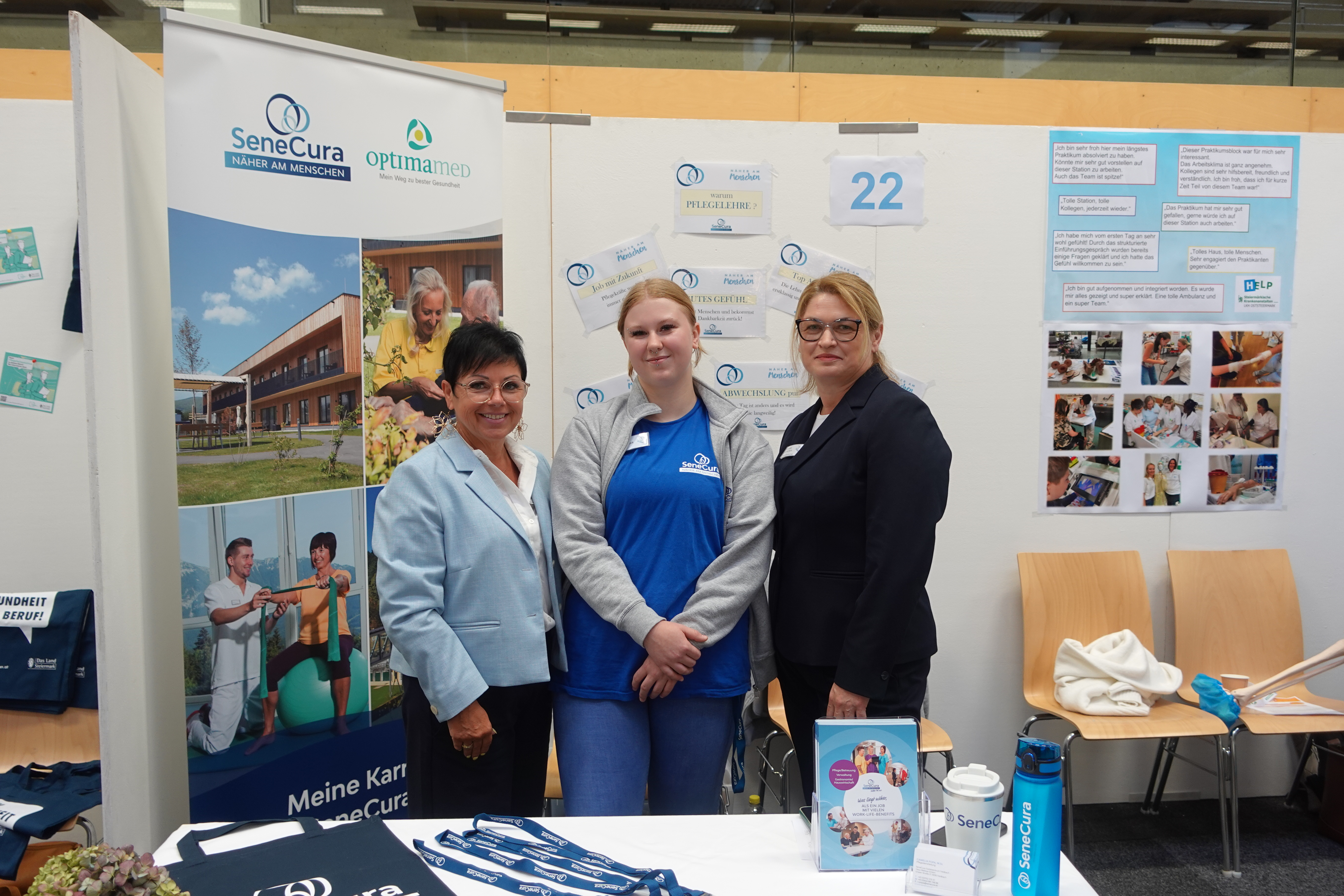 Am 25. und 26. September 2025 war das SeneCura Sozialzentrum Feldbach – Haus Melisse samt Team auf der Messe für Bildung und Beruf in der Südoststeiermark vertreten – der zentralen Informationsplattform für Schüler:innen, Eltern und Lehrkräfte. Über 400 Lehrbetriebe präsentierten sich bei dieser wichtigen Veranstaltung, die steiermarkweit für Qualität in Ausbildung und Berufsorientierung steht.