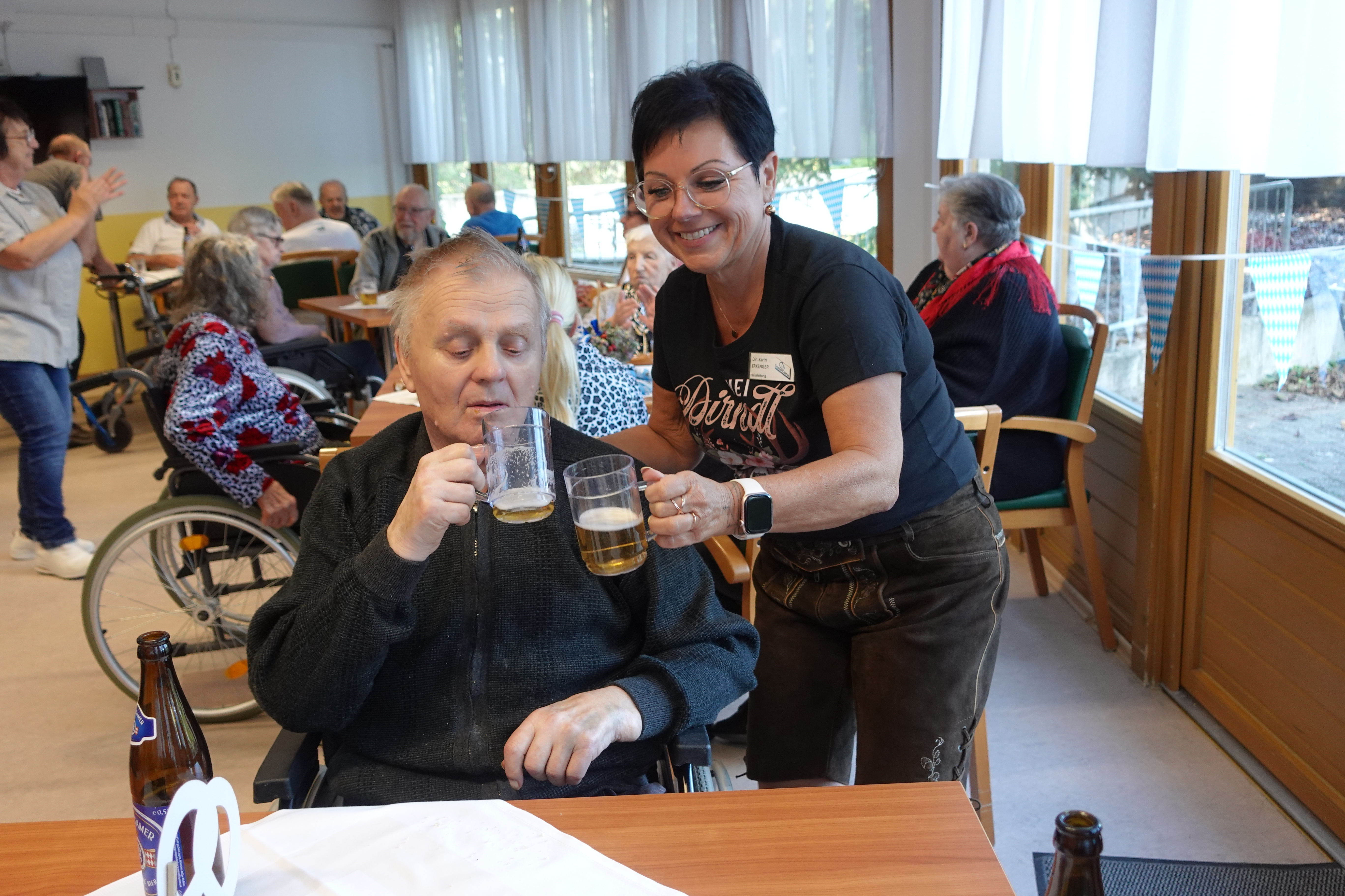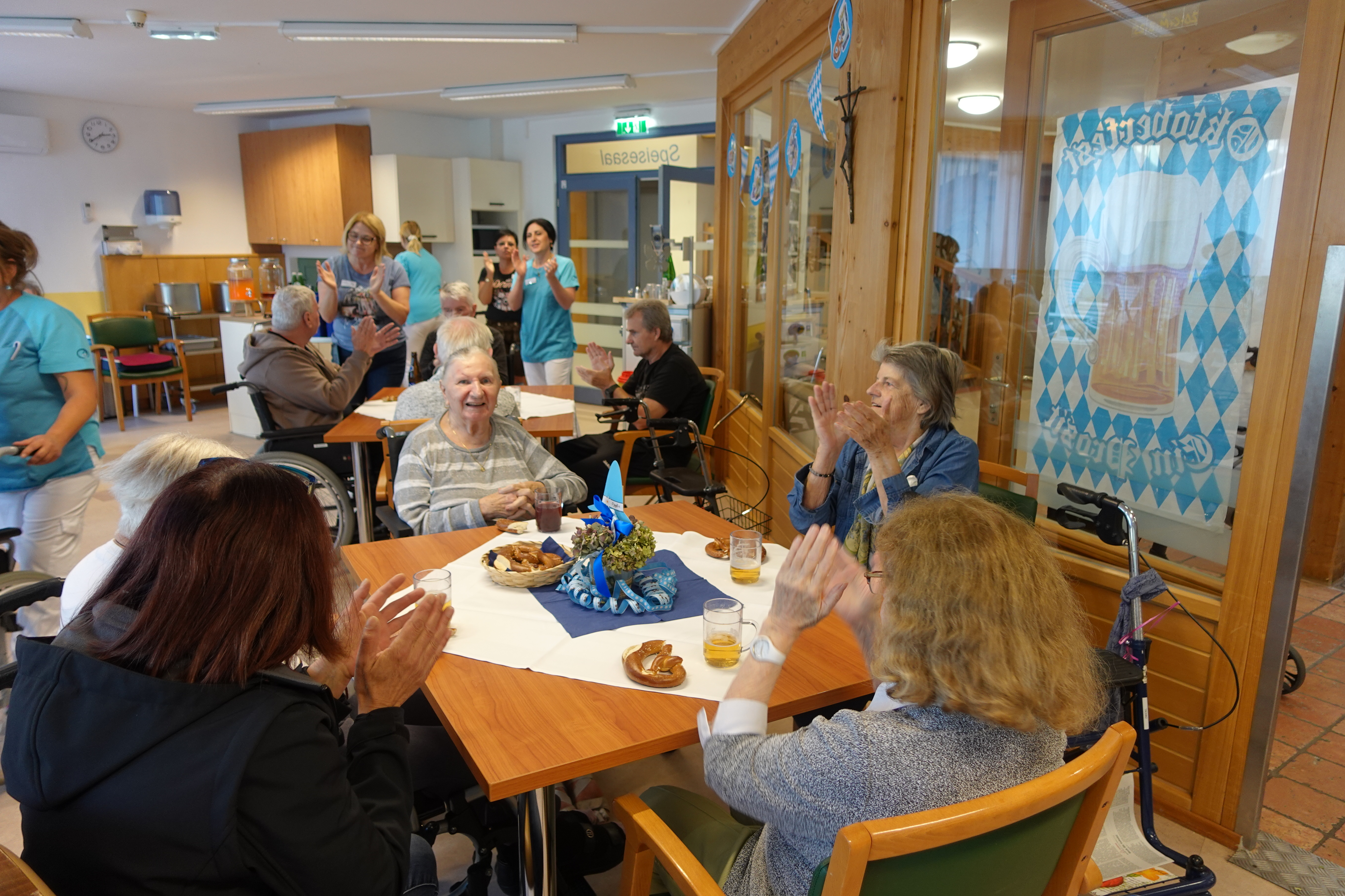 Im SeneCura Sozialzentrum Feldbach – Haus Melisse wurde kürzlich ein ausgelassenes Oktoberfest unter dem Motto „Lieber a Bier in da Hand, ois a Kater im Kopf“ gefeiert. Die Bewohner:innen genossen einen Nachmittag Bier und frische Brezn. Stimmungsvolle Musik sorgte für richtige Feststimmung und einige Bewohner:innen tanzten, sangen und klatschten begeistert mit. Die Anwesenden genossen den Tag in vollen Zügen und hatten riesen Spaß. Als Abschluss gab es für die Bewohner:innen traditionell Weißwurst mit süßem Senf. „Ein tolles Fest – wir hatten eine riesn Gaudi.“, so eine der Bewohnerinnen erfreut.